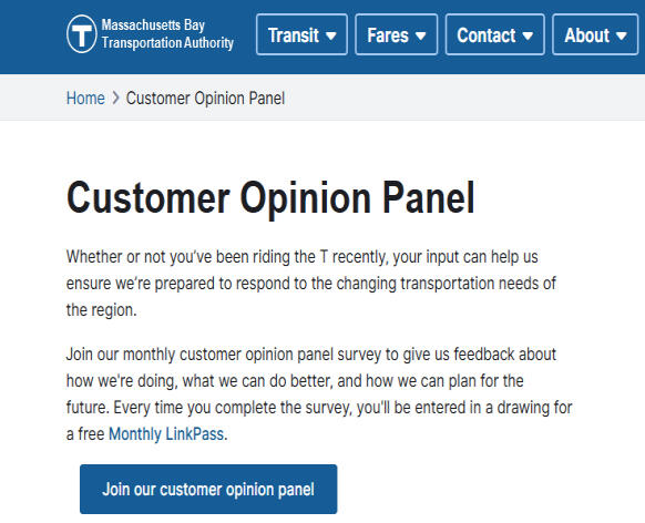 Please consider taking MBTA Customer Survey - MBTA wants riders feedback.
