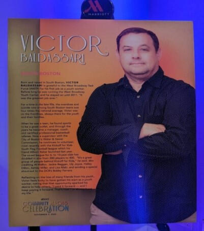 Born and raised in South Boston, Victor Baldassari is grateful to the West Broadway Task Force (WBTF) for his first job as a youth worker. Before long he was running the West Broadway Youth Center, and he stayed on until 2011. “It was the greatest job ever.”For a time in the late 90s, the overdose and suicide rate among South Boston teens was four times the national average. Victor was on the frontlines, always there for the youth and their families.When he was a teen, he found sports to be a great outlet, and through the years he became a manager, coach, and certified professional basketball referee. Now a supervisor with the City of Boston’s Water & Sewer Commission, he continues to volunteer, most recently with the Kickoff for Kids Youth Flag Football league which his friend Allison Baker launched last year. The co-ed league for 6- to 13-year-olds has doubled in size from 200 players to 400. “It’s a great group of people behind Kickoff for Kids,” he said, also crediting Al Mallon, Jackie Beggan, Lily Joyce, Hailey Dillon, Ashley Miller, and Lisa Maki, and sending a special shout-out to the DCR’s Bobby Ferrara.Reflecting on the loss of many friends from his youth, Victor feels lucky to have gotten his start as a youth worker, noting that that opportunity sparked his desire to help others. “I paid it forward – and I keep paying it forward. That’s how I’ve always lived my life.”